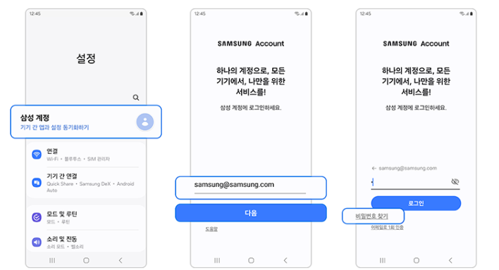 삼성계정 비밀번호 찾기 방법
