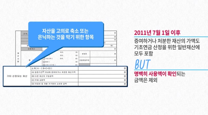 - 처분한 재산가액: 2011년 7월 1일 이후 중요하게 처분한 재산의 가액을 입력합니다.